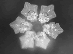 A photo of a water molecule demonstrated by the Japanese scientist Masaru Amoto who says that there is a healing power in the well of Zamzam for many diseases. Recent studies proved that reading the Koran on Zamzam water increases its healing power and the arrangement of its molecules changes.