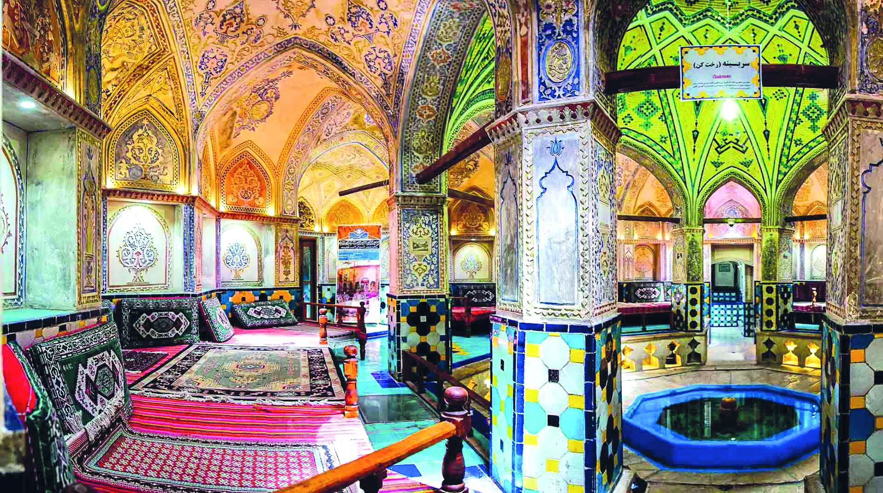 Notable in the interior of the bathhouse are its vaulted ceilings, exquisite mosaics and paintings. It represents one of the most beautiful examples, in terms of architecture and decorations, of an ancient public bathhouse visible today in Iran.