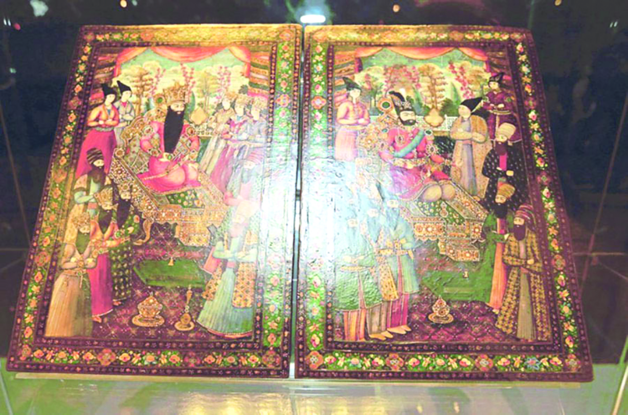 Фарсылар папье-машедан ясалган һәм лак белән капланган тышлыкны көндәлек гадәткә кертәләр. Иранда дини кулъязмаларны бизәгәндә тере мәхлукларның сурәтен төшерү тыелган булса да, дөньяви китапларда бу алай катгый булмаган. Бай кешеләр китап тышлауның чыгымнарын үз өсләренә алган һәм кул осталарына үзләренең сурәтләрен тышлыкта бастыруны йөкләгәннәр. Мәсәлән, Каҗарлар буыны чорында китап тышлыкларында Фәтех Гали шаһ кебек әмирләрнең сурәте ясалган. Бу кыйммәтле эш булып саналган, шуңа күрә моны бары тик бай кешеләр генә эшләтә алган.