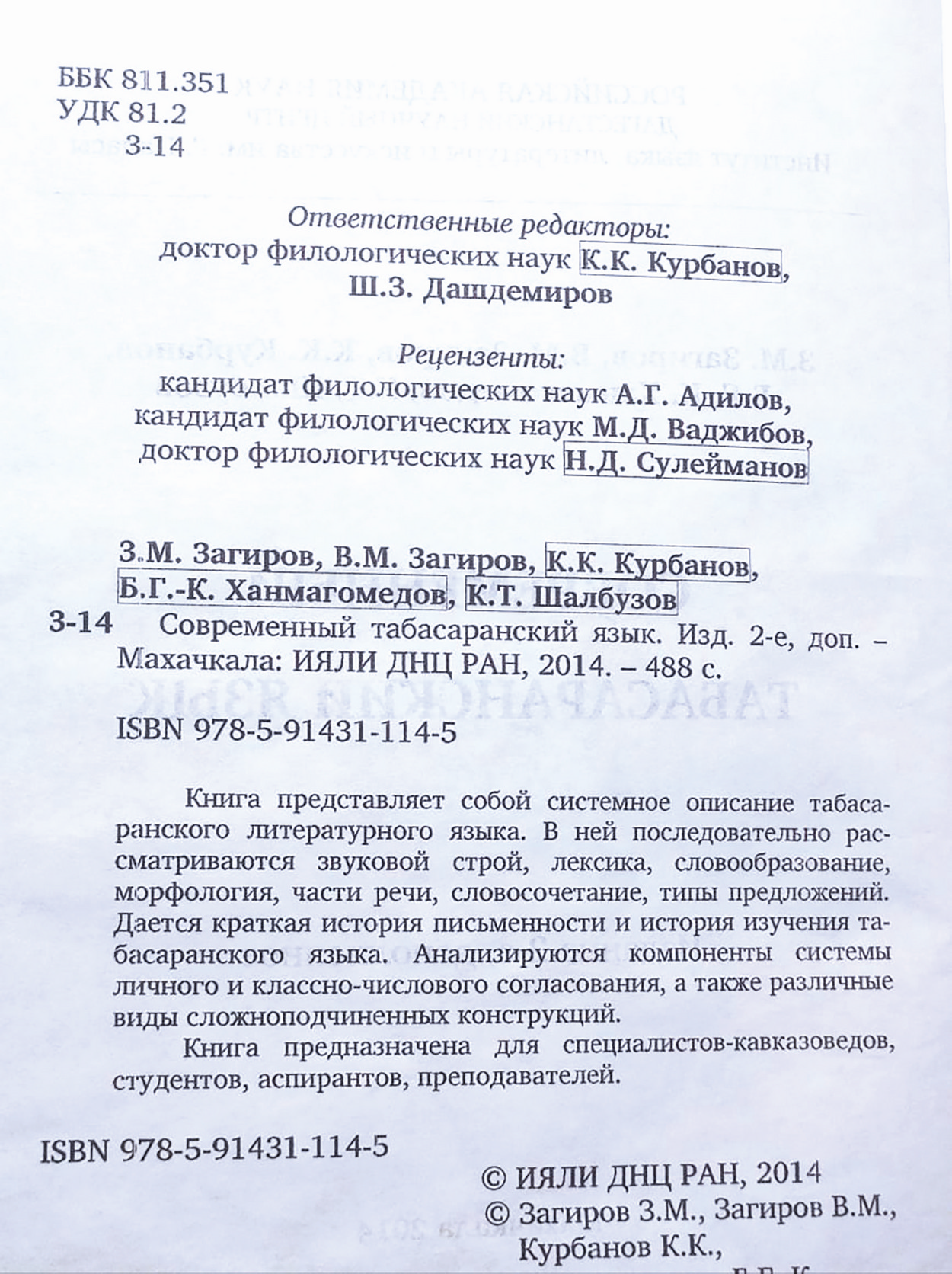 Гъийин ихь ихтилат гизаф терефарихъанди бажаругълу, табасаран чIалнан лексикологияйин ва лексикографияйин бина ккиву, лезги ва табасаран дестейин чIалар дериндиан ва бегьерлуди ахтармиш апIурайи ихь халкьдин вафалу аьлим-лингвист, филологияйин илмарин доктор, профессор Велибег Мирзабегович Загьировдикан шиди.