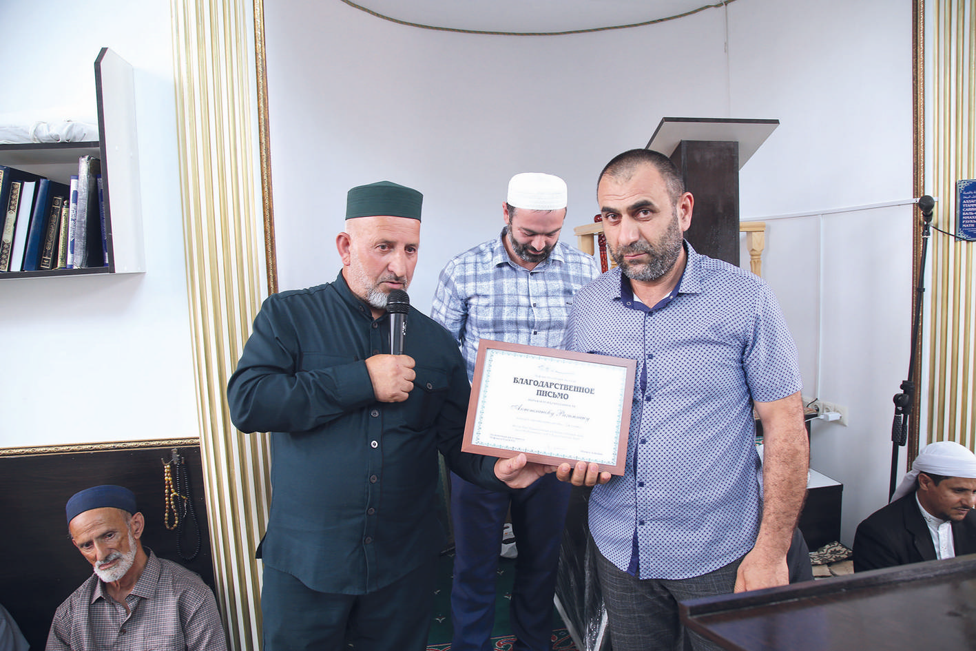 Мажлиснан аьхириъ Муфтиятдин терефнаан Жулжагъ гъулан имам Руслан Аслановдиз чухсагъул кlуру кагъаз ва хилихъ хъапlру сяаьт тувну, хъа мистаз гъудгнарин вахтар улупру аьхю сяаьт багъиш гъапIну.