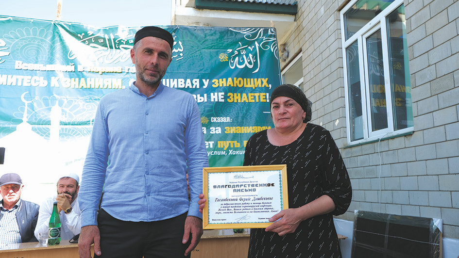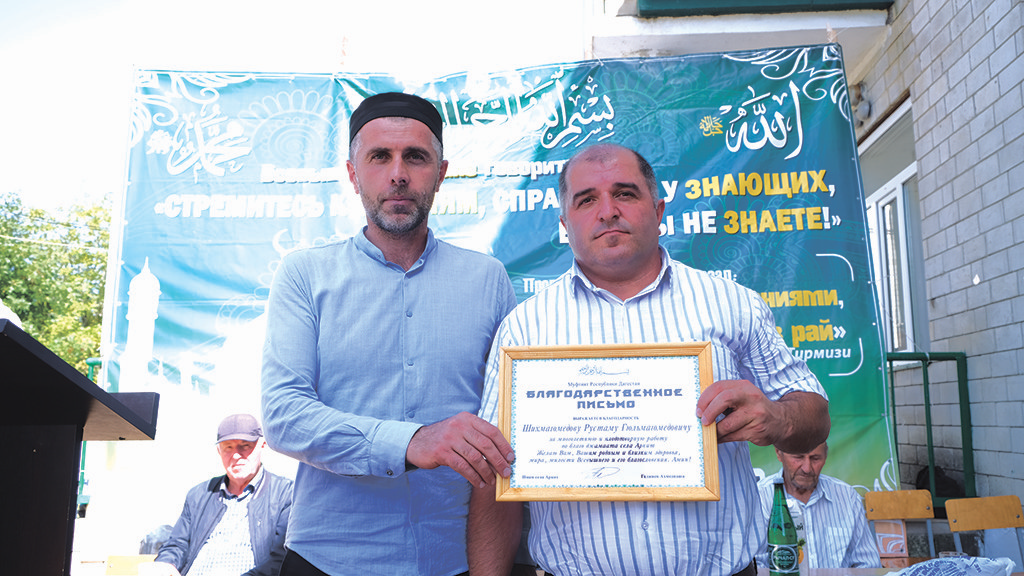 Гъулан имамди чан терефнаан ужувлан ляхнариз кюмек тувбан гъулан глава Рустам Шихмагомедовдиз «Аферинвалин кагъаз» тувну, думутIанна гъайри, читин уьзур айи вахтна гизаф зегьмет гъизигу гъулан фельдшер Фариде Гасанбековайизра пешкеш тувну.